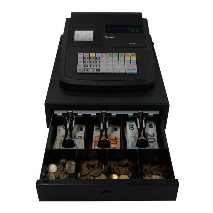 De Sam4s ER-180US beschikt over een verkopersdisplay (1-regel) en een klantendisplay (1-regel). Daarnaast heeft de kassa 16 sneltoetsen, hieronder kunt u de populaire en veelgekochte artikelen programmeren. Met de ER-180U kunt u 6 rapporten uitdraaien, met alle gemak krijgt u een overzicht van uw verkopen of een dagrapportage.